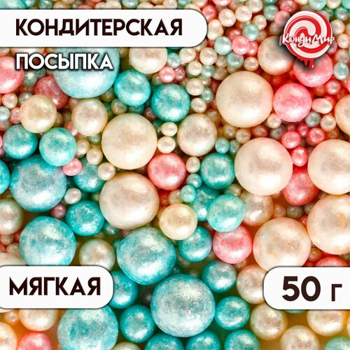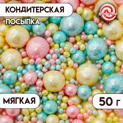 Посыпка с мягким центром "Жемчужинки" 50 г розовый, голубой, белоснежный глиттер