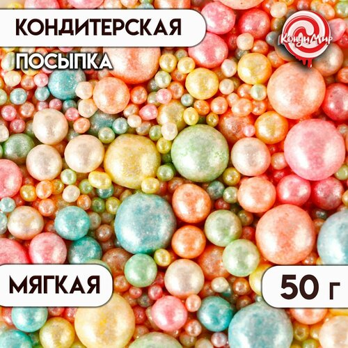 Посыпка с мягким центром "Нежный блеск" 50 г розовый, персиковый, лазурный, мятный