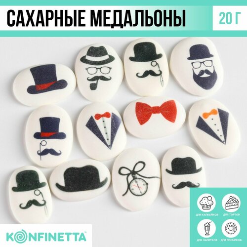 Сахарные медальоны с картинками "Джентельмены", декор для капкейков, тортов, пончиков, айсинг декор