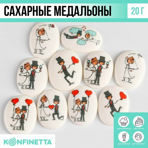 Сахарные медальоны с картинками "Свадьба", декор для капкейков, тортов, пончиков, айсинг декор