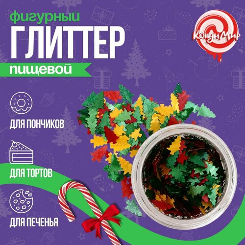 Фигурный глиттер кандурин пищевой "Елочки разноцветные" / Пищевая добавка-краситель