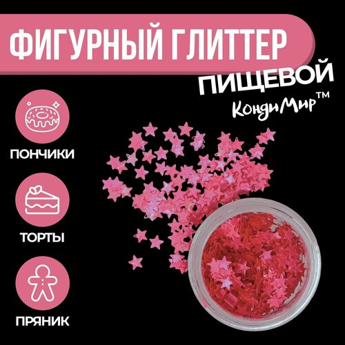 Фигурный глиттер кандурин пищевой "Звезды розовые" / Пищевая добавка-краситель