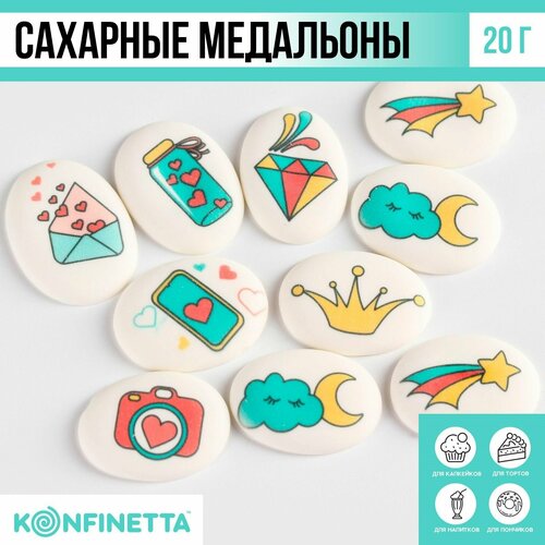 Сахарные медальоны с картинками "Сладкий подарок", декор для капкейков, тортов, пончиков, айсинг декор