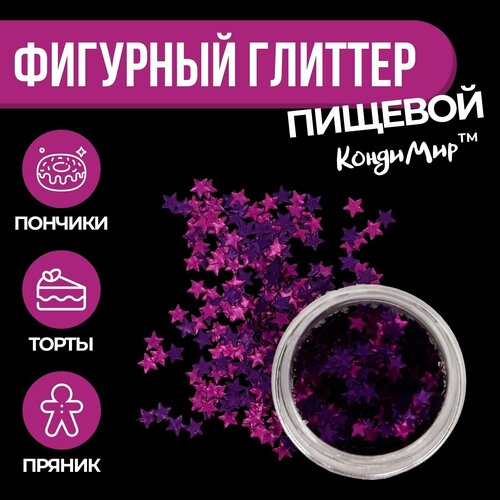 Фигурный глиттер кандурин пищевой "Звезды фиолетовые" / Пищевая добавка-краситель