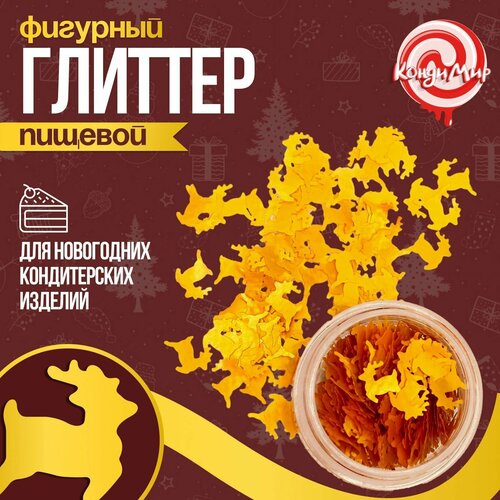 Фигурный глиттер кандурин пищевой "Олени золотые" / Пищевая добавка-краситель