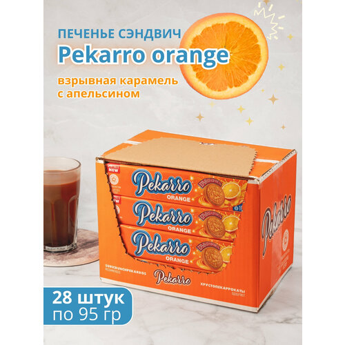 Печенье сэндвич Pekarro orange взрывная карамель с апельсином, 28 шт по 95 гр