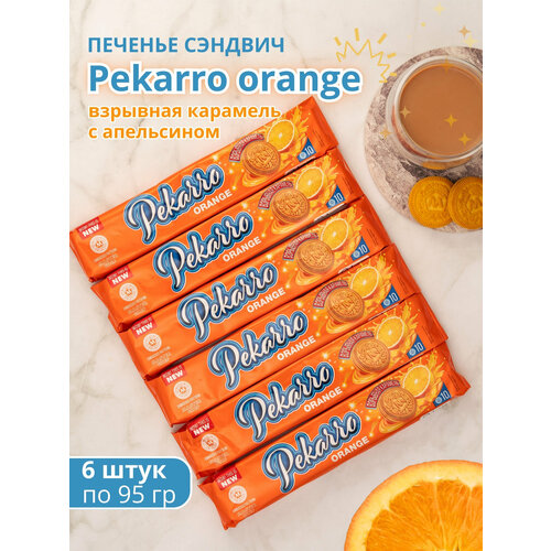 Печенье сэндвич Pekarro orange взрывная карамель с апельсином, 6 шт по 95 гр