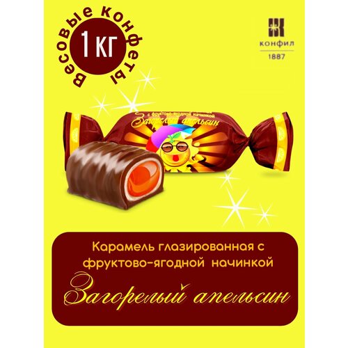 Карамель глазированная Конфил "Загорелый апельсин" 1 кг с фруктово-ягодной начинкой с добавлением апельсинового пюре