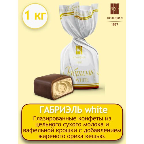 Конфеты Конфил глазированные Габриэль white из цельного сухого молока и вафельной крошки с кешью весовые — 1 кг
