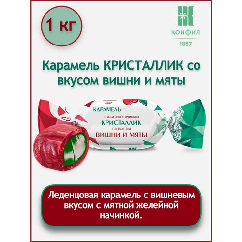 Конфеты Конфил Кристаллик карамель с вишневым вкусом с мятной желейной начинкой весовые 1 кг