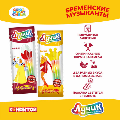 Лучик Бременские музыканты карамель на светящейся палочке, блок 30 шт. (10г х 30 х 24)