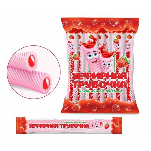 Зефирная трубочка с джемом с клубничным вкусом в пакете, блок 30 шт. (15г х 30 х 20)