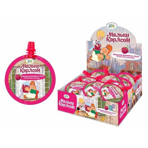 Малыш И карлсон жидкая конфета-гель со вкусом малины, блок 24 шт. (20г х 24 х 24)