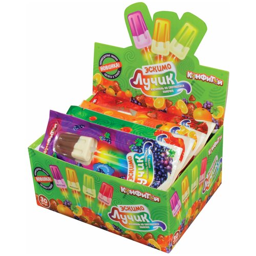 Лучик Эскимо карамель на светящейся палочке фруктовое ассорти, блок 30 шт. (10г х 30 х 24)