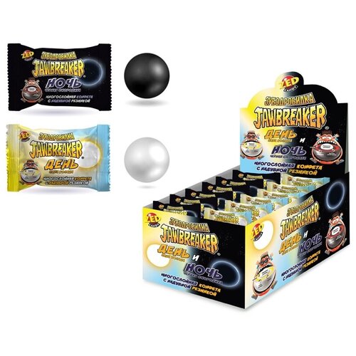 Зубодробилка День и Ночь многослойная конфета с надувной резинкой, блок 45 шт. (13г х 45 х 12)