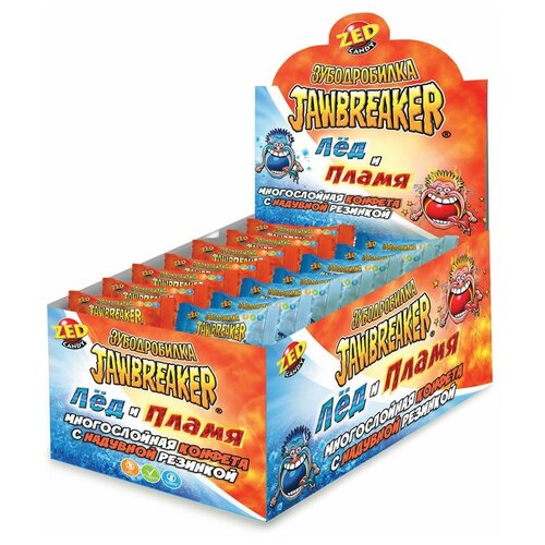 Зубодробилка Лёд и пламя многослойная конфета с надувной резинкой, блок 45 шт. (13г х 45 х 12)