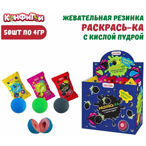 Жевательная резинка раскрась-ка с кислой пудрой, 50 шт по 4 гр / Конфитой