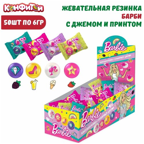 Жевательная резинка барби с джемом и принтом, 50 шт по 6 гр / Конфитой