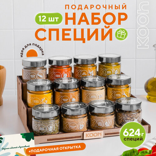 Подарочный набор специй и приправ Kooh из 12 вкусов на подставке для женщин и мужчин с поздравительной открыткой