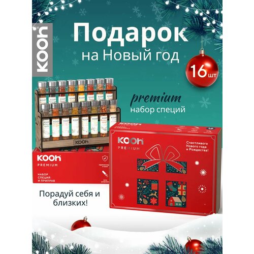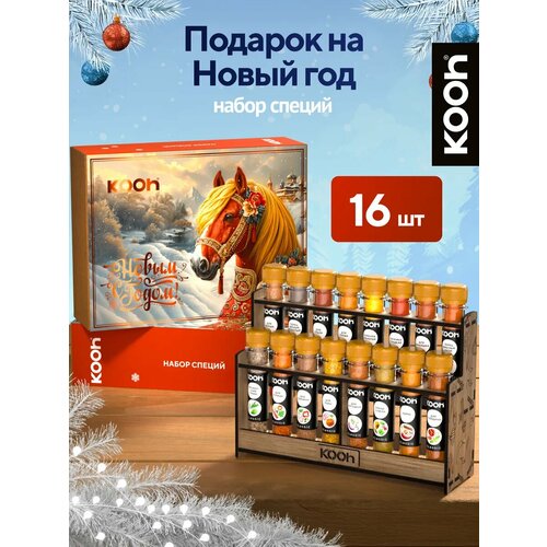 Новогодний набор приправ и специй Kooh, набор специй на подставке 16 видов, подарки на Новый год 2026 мужчине, женщине