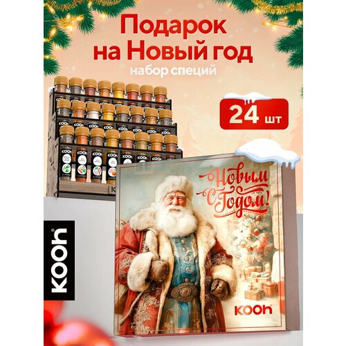 Новогодний набор приправ и специй Kooh, набор специй на подставке 24 вида, подарки на Новый год 2026 мужчине, женщине