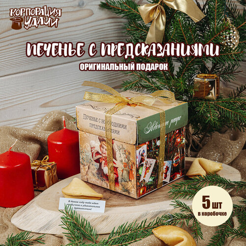 Печенье с новогодними предсказаниями "Новогоднее ретро", 5 штук. Подарок на Новый год