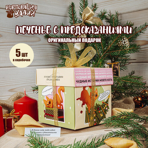 Печенье с новогодними предсказаниями "Чудные истории моего кота", 5 штук. Подарок на Новый год