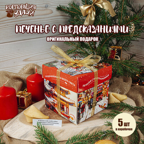 Печенье с новогодними предсказаниями "Новый год в большом городе", 5 штук. Подарок на Новый год