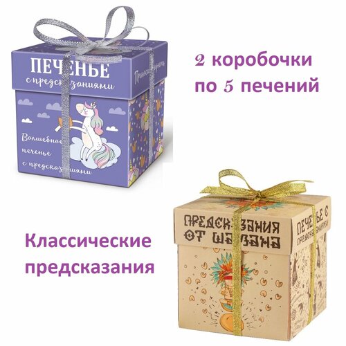 Печенье с предсказанием, Набор Ассорти №1 из 2-х коробок 35г (Единорог, Шаман). Подарок