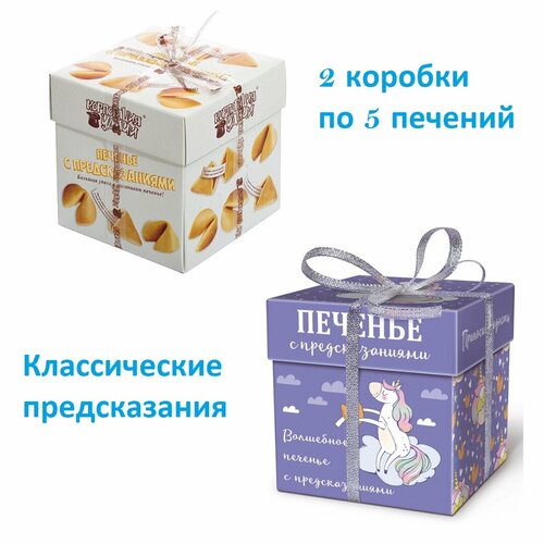Печенье с предсказанием, Набор Ассорти №3 из 2-х коробок по 35г (Единорог, Стандарт). Подарок