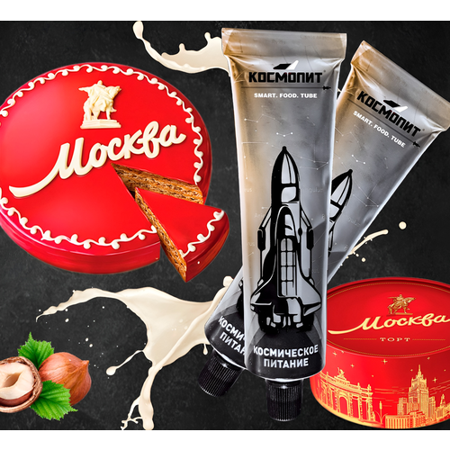 Космическое питание Торт Москва в тюбике 115г (без подогрева) Космопит в подарок/ореховый торт/сладкое/к чаю/с собой/в поход/детям