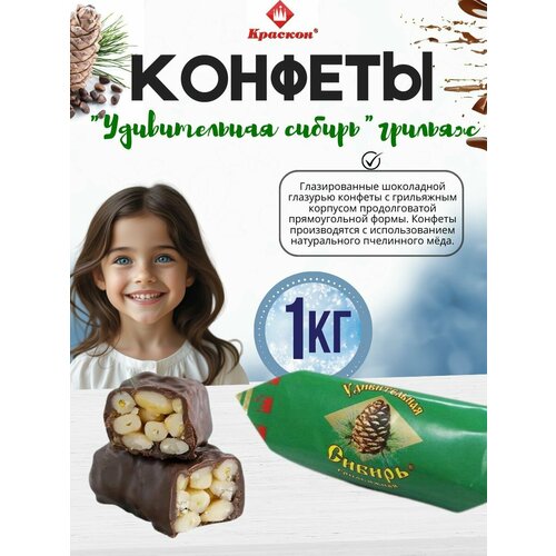 Конфеты шоколадные грильяж кедровый мягкий с медом Удивительная Сибирь 500г Краскон