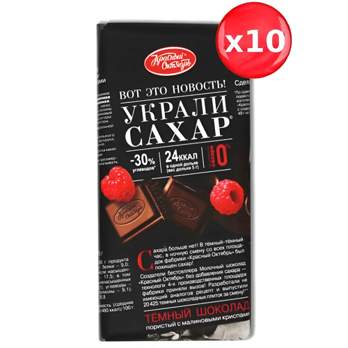 Шоколад Красный Октябрь "Украли сахар" темный пористый с малиновыми криспами 75г, набор из 10 шт.