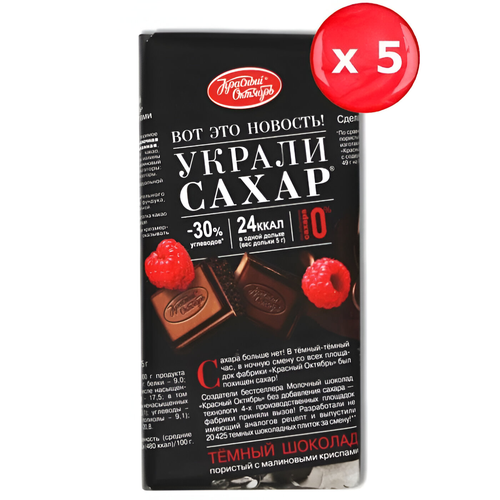 Шоколад Красный Октябрь "Украли сахар" темный пористый с малиновыми криспами 75г, набор из 5 шт.
