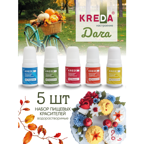 Набор пищевых красителей KREDA, "Дача", гелевый, для бенто-тортов, 5 цветов