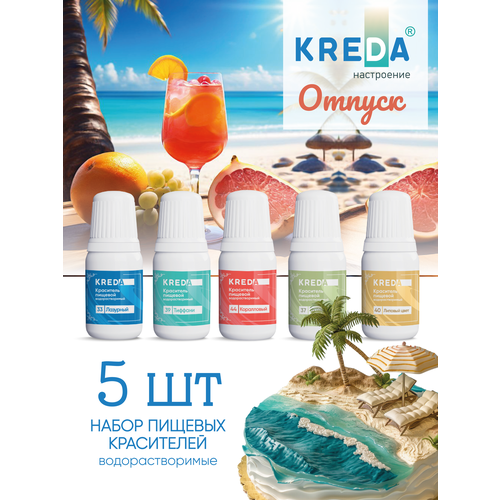 Набор пищевых красителей KREDA "Отпуск", водорастворимый, 5 цветов