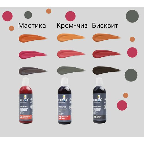 Набор пищевых красителей CHOCOLATE креда (KREDA) 3 цвета Oil-gel (плюс карта смешивания цветов), жирорастворимые гелевые, 3шт*20мл
