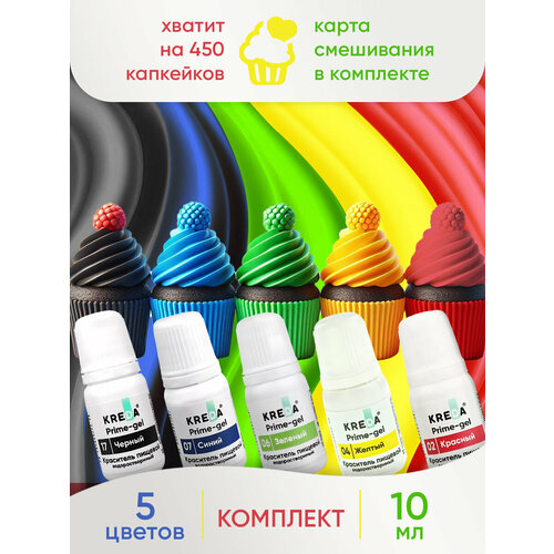 Набор красителей Kreda "Prime", гелевые, 10 мл, 5 шт