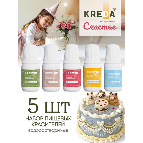 Набор пищевых красителей KREDA "Cчастье", гелевый, 5 цветов