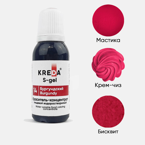 Пищевой краситель Kreda S-gel, бордо, 20мл, гелевый, водорастворимый