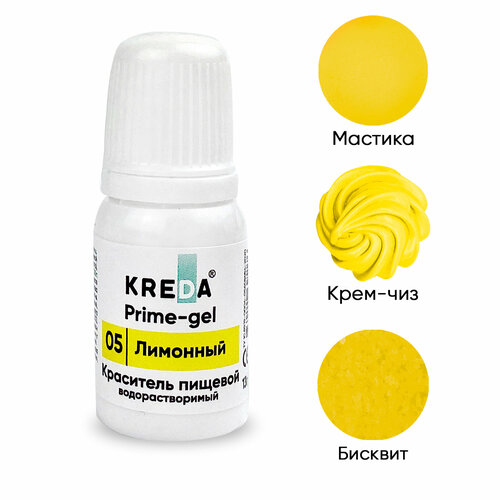 Пищевой краситель Kreda Prime-gel, лимонный, 10 мл, гелевый, водорастворимый,