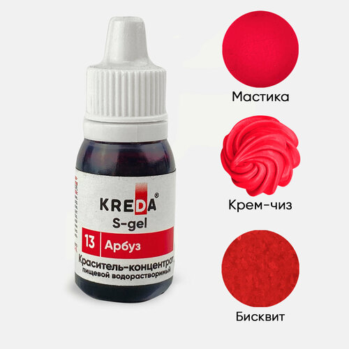 Пищевой краситель Kreda S-gel, арбуз, 10 мл, гелевый, водорастворимый