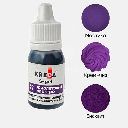 Пищевой краситель Kreda S-gel, фиолетовый электро, 10 мл, гелевый, водорастворимый