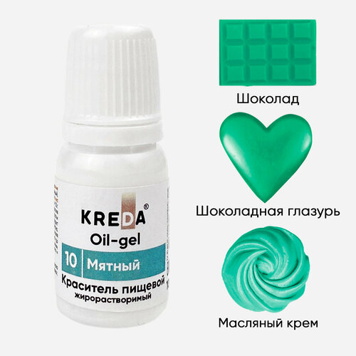 Пищевой краситель для шоколада Kreda Oil-gel, мятный, 10 мл, гелевый, жирорастворимый
