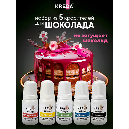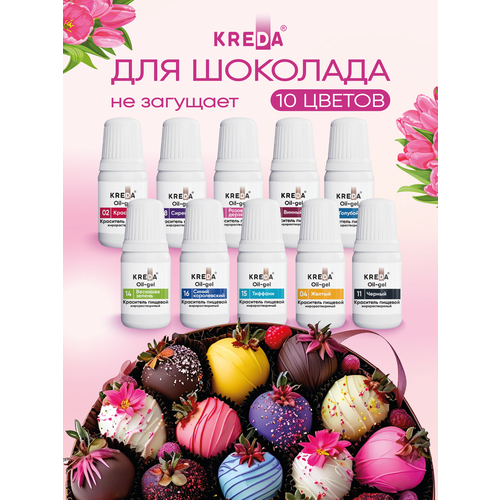 Пищевой краситель KREDА "Шокомания" для шоколада, глазури и конфет, 10 цветов