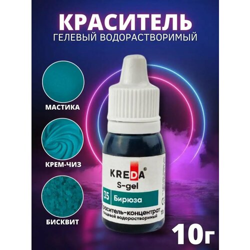 Краситель гелевый "Kreda" S-gel 35 Бирюза, (10 г)