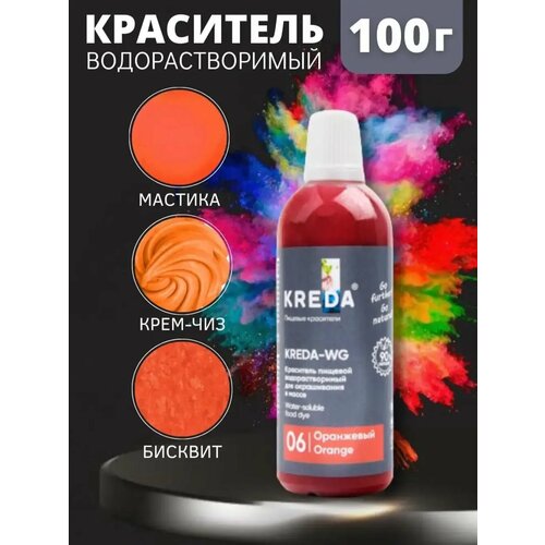 Краситель WG06 Kreda водорастворимый оранжевый 100гр, пищевой для торта, кремов, бисквита