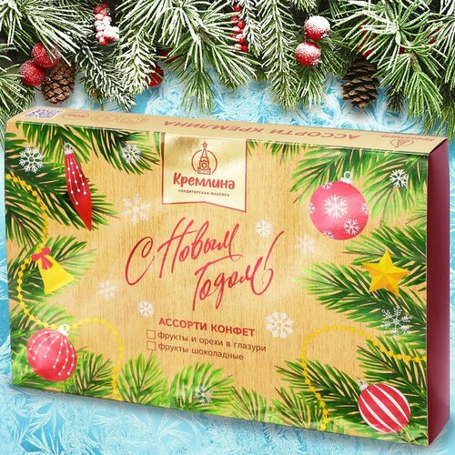 Конфеты Ассорти Кремлина фрукты шоколадные: Манго, Груша, Апельсин, Финик и Инжир в коробке подарочной "С новым годом!" 500 г,