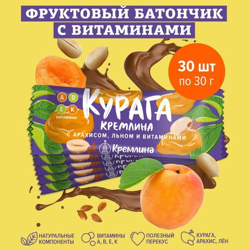 Набор глазированных полезных батончиков Курага Кремлина с арахисом, льном и витаминами 30 шт по 30 г