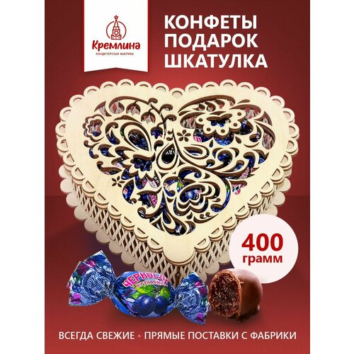 Кремлина Чернослив шоколадный в резной шкатулке, 400 г, подарочная упаковка